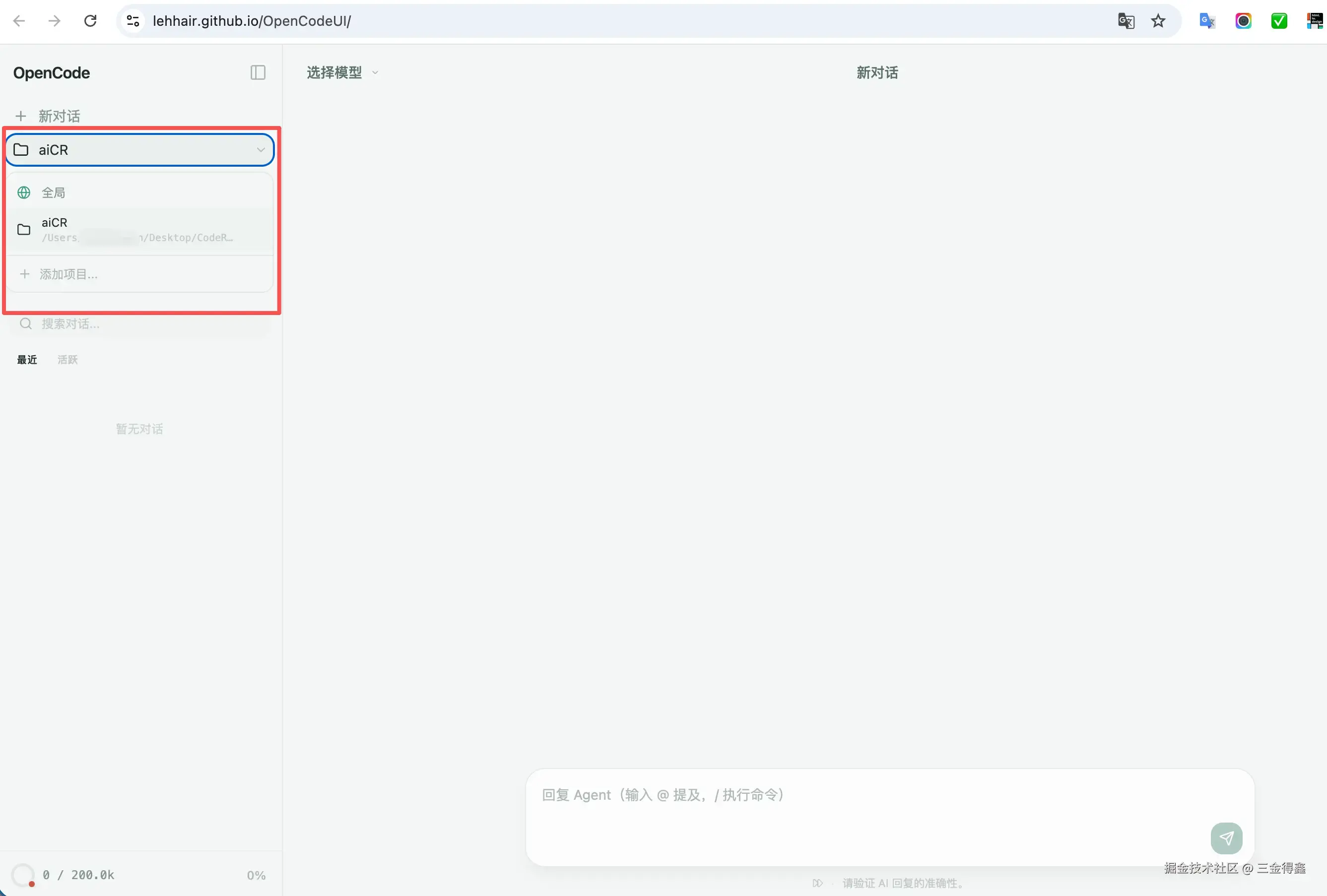 然后打开:https://lehhair.github.io/OpenCodeUI/ 即可