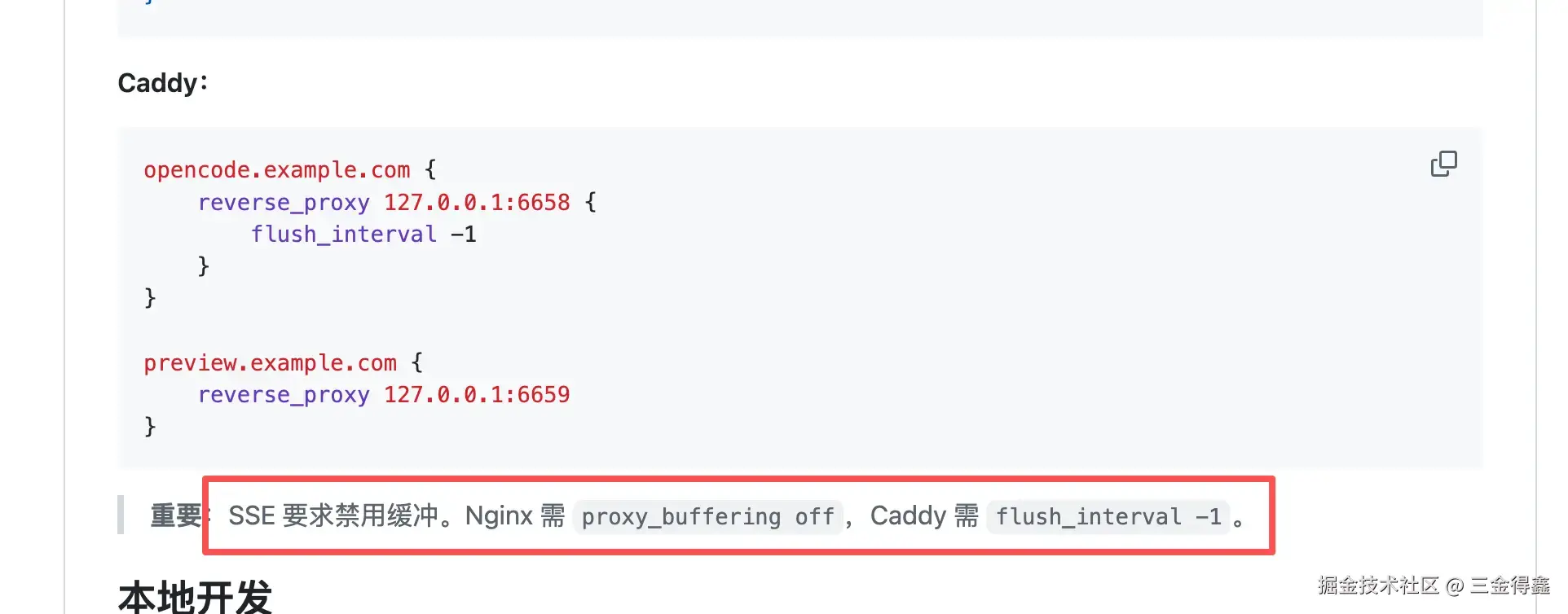 排查了一下发现是 Nginx 反向代理把 SSE 缓冲了。其实在项目的 README 里有提示,但是没细看给漏掉了: