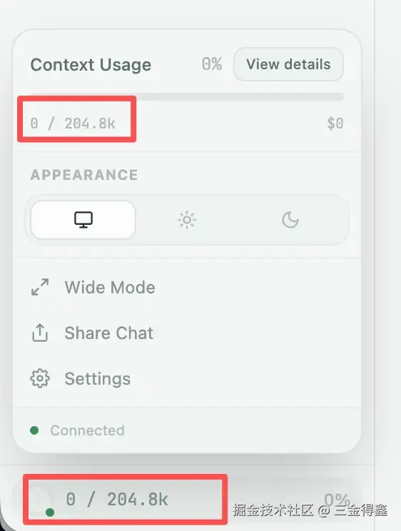 这里我接入的是第三方的 API,没有设置上下文,所以看到的是 0,改成智普的套餐后就正常了。