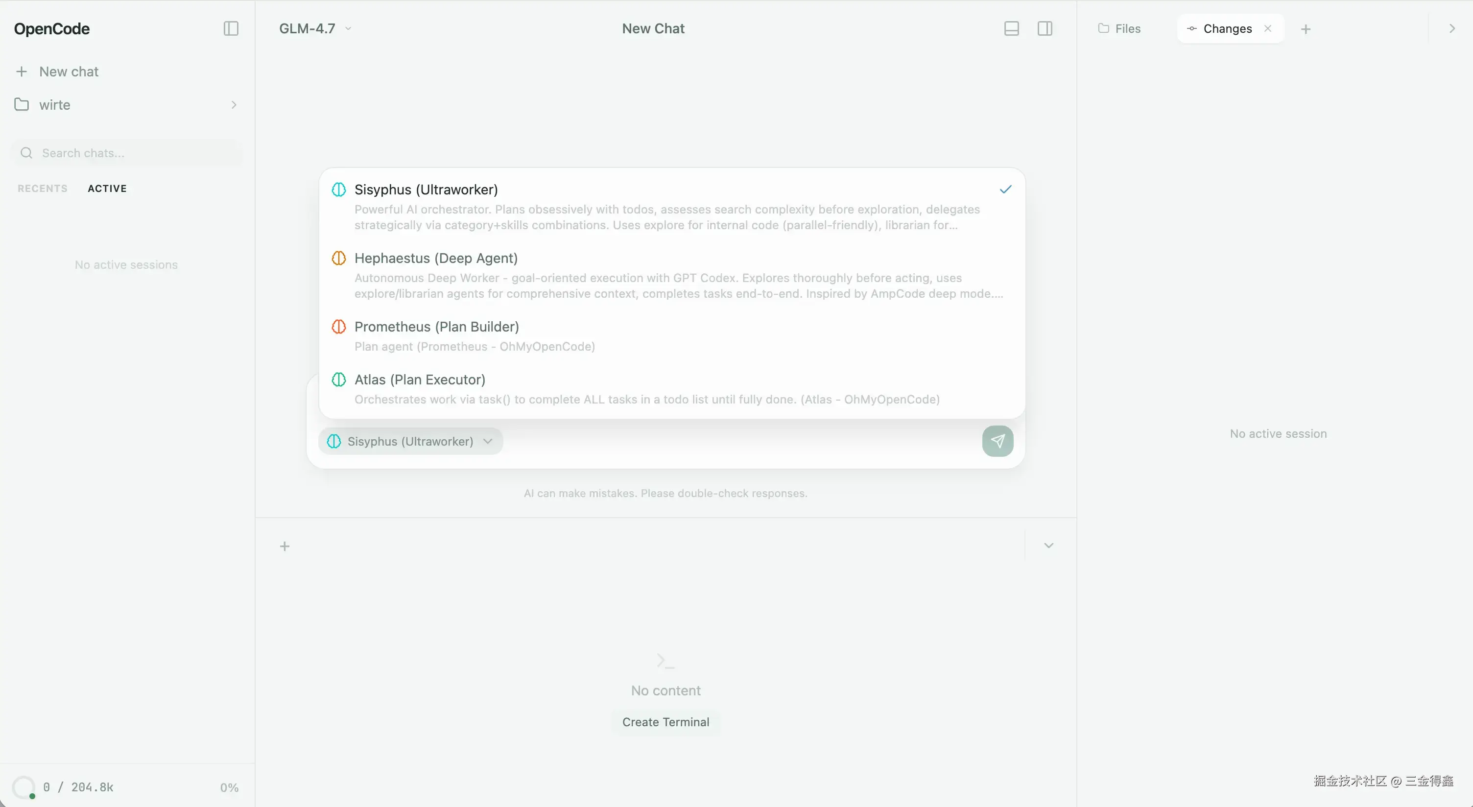 - 中间是主区域,也支持展示 OMO。还可以创建 terminal,非常 nice~