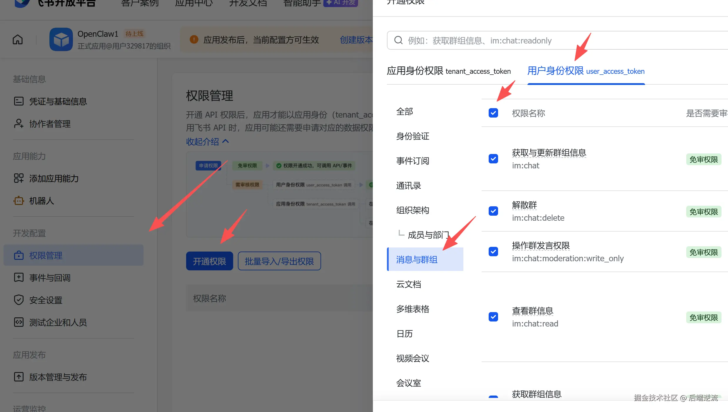 - 事件与回调配置(如果没有配自行去配,按照提示的指引配置即可)