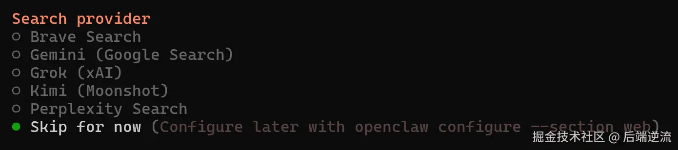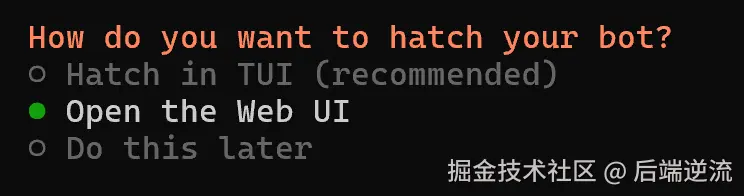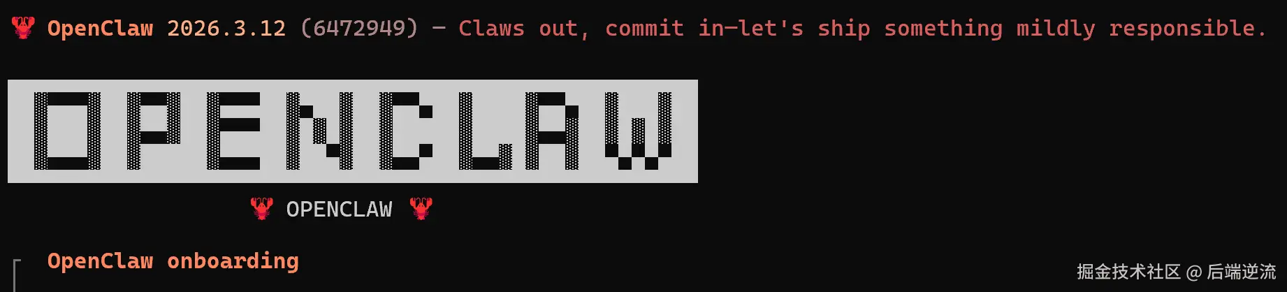 在此,我使用 openclaw onboard --install-daemon命令,复现一下我的配置选择,你们是第一次安装不用执行该命令,