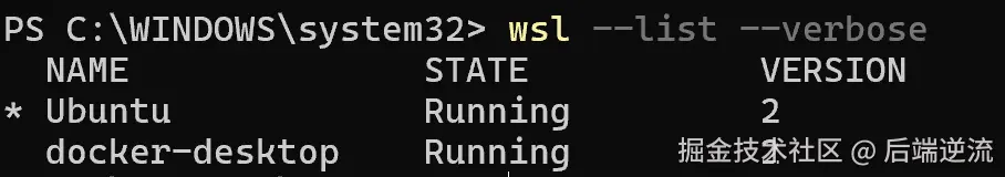 安装完成后检查版本,确保是wsl2版本,不要着急,确保Ubuntu系统是正常再往下执行,不必追求快,只要我们没一步都是对的,我们踩的坑越少花费的时间越短