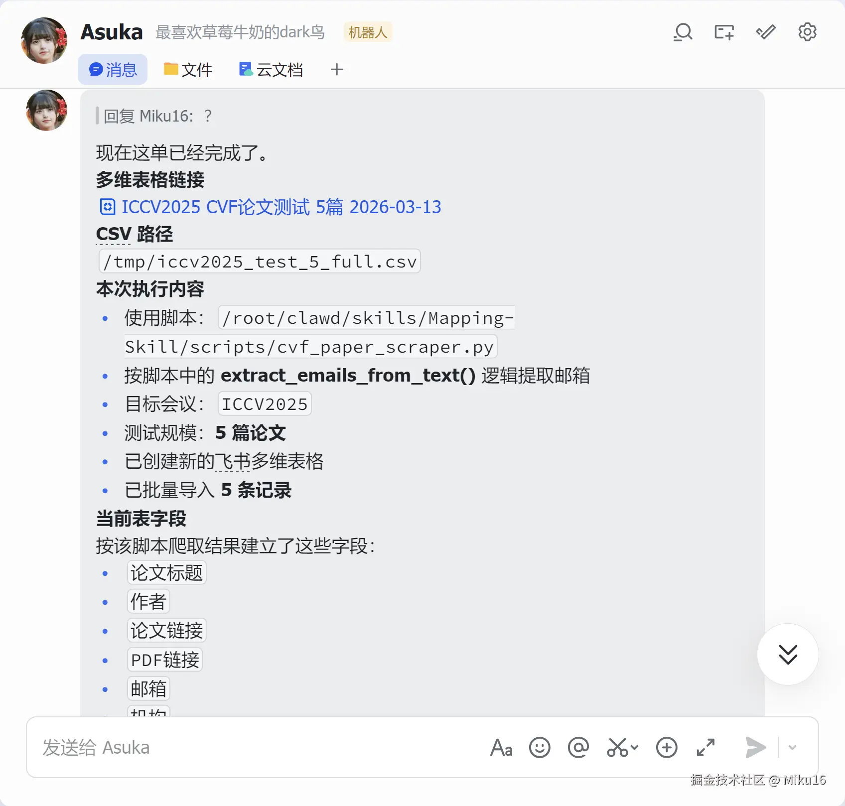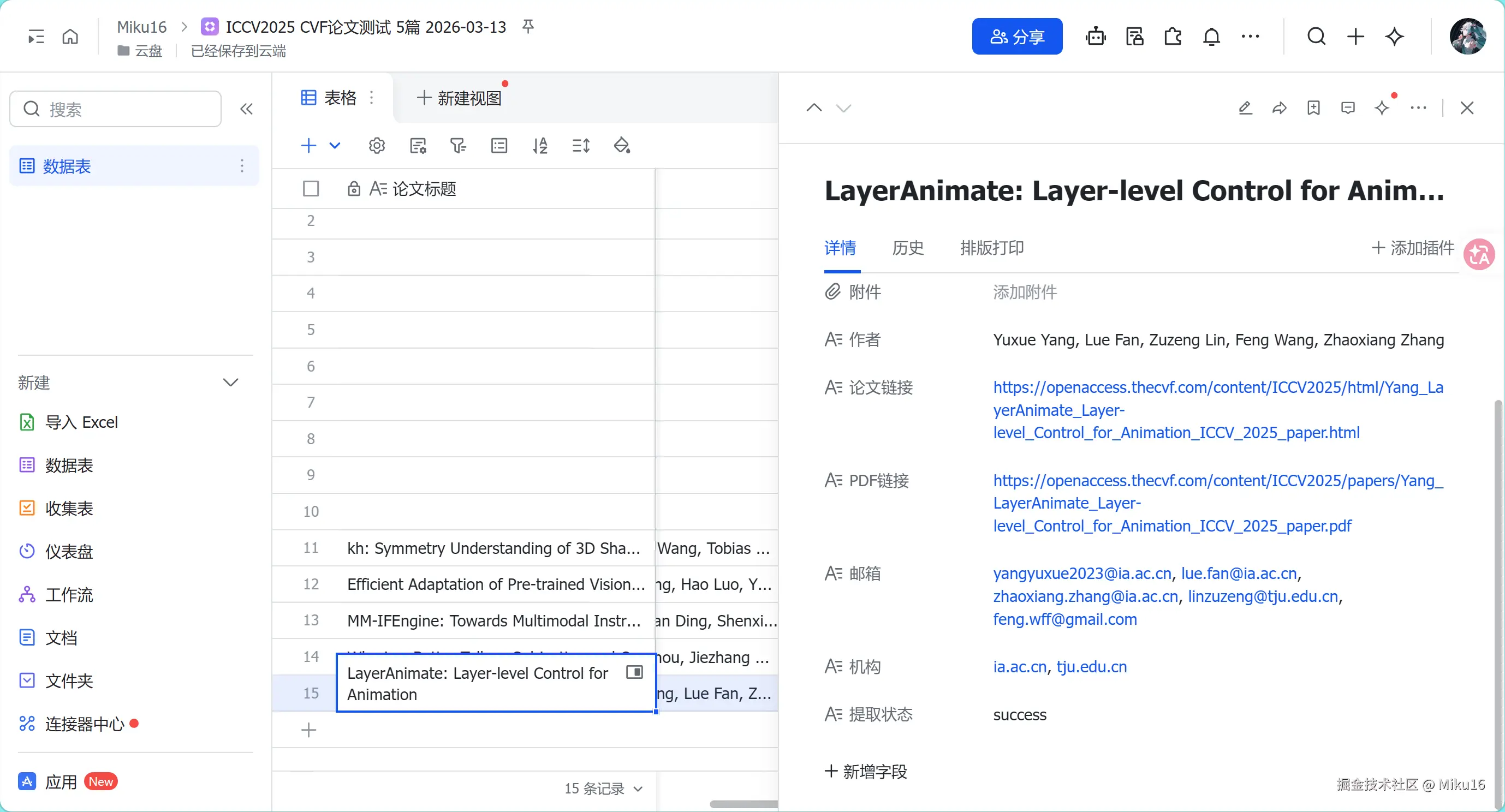 5. 创建新的飞书多维表格,按照Mapping-Skill/scripts/cvf_paper_scraper.py 脚本中爬取的数据来创建相应字段