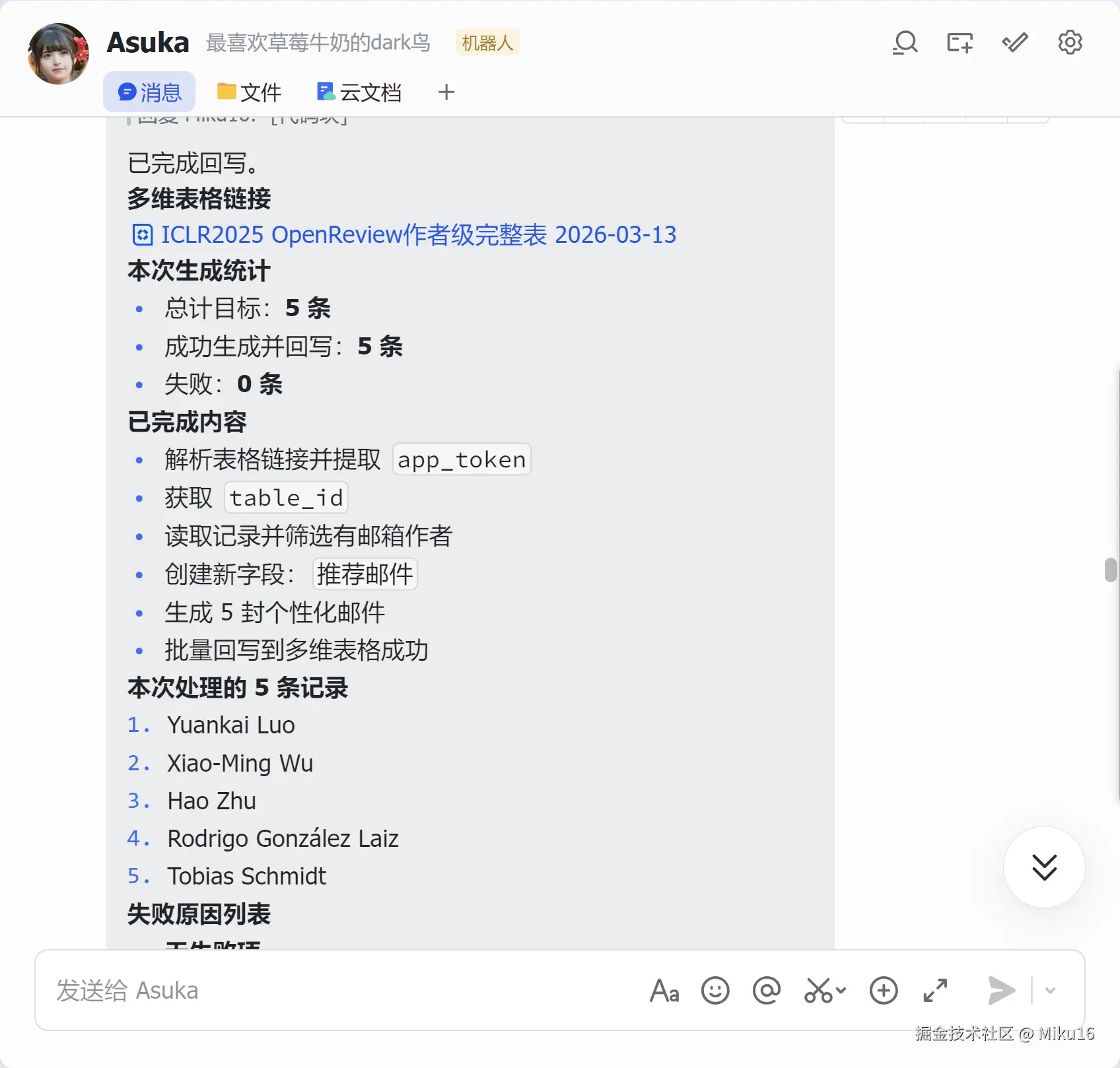 7. 返回多维表格链接和邮箱提取统计