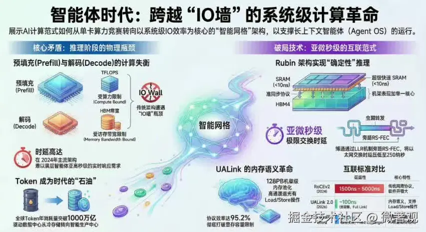 这种全时在线、深度协作的伙伴关系直接催生了**代币工厂(Token Factory)**的诞生。全球年度 Token 消耗量已突破 1000 万亿(Quadrillion)大关,Token 成了这个时代的“石油”。数据中心正从冷数据的“集中存储站”转型为大规模生产“智能原子(Token)”的动力中心。为了支撑 OpenClaw火爆背后呈几何倍数爆发的推理负载,我们必须在算法复杂度、内存语义一致性与物理互联协议上,进行一场人类工程史上最激进的“系统剥削”。