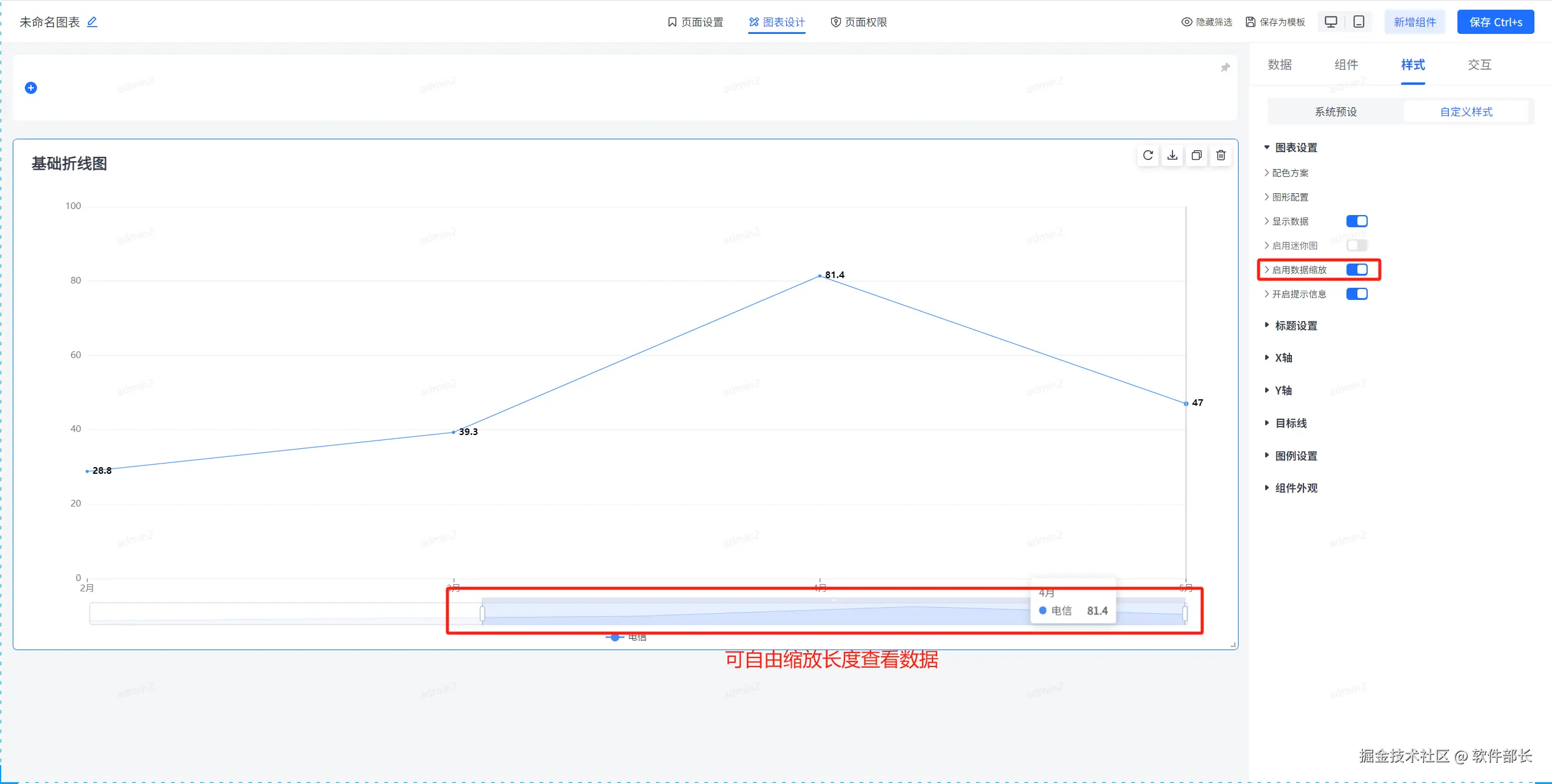 数据缩放即下方会出现一个缩放条,可根据此条自由缩放展示的数据。