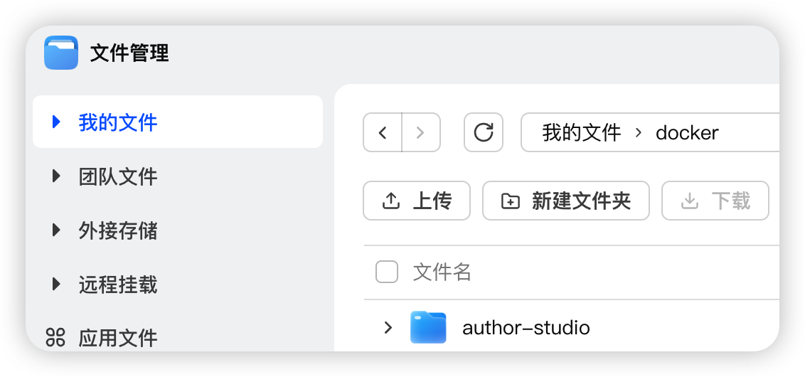 打开 NAS 的「文件管理」,在 docker 文件夹下新建名为 author 的文件夹。