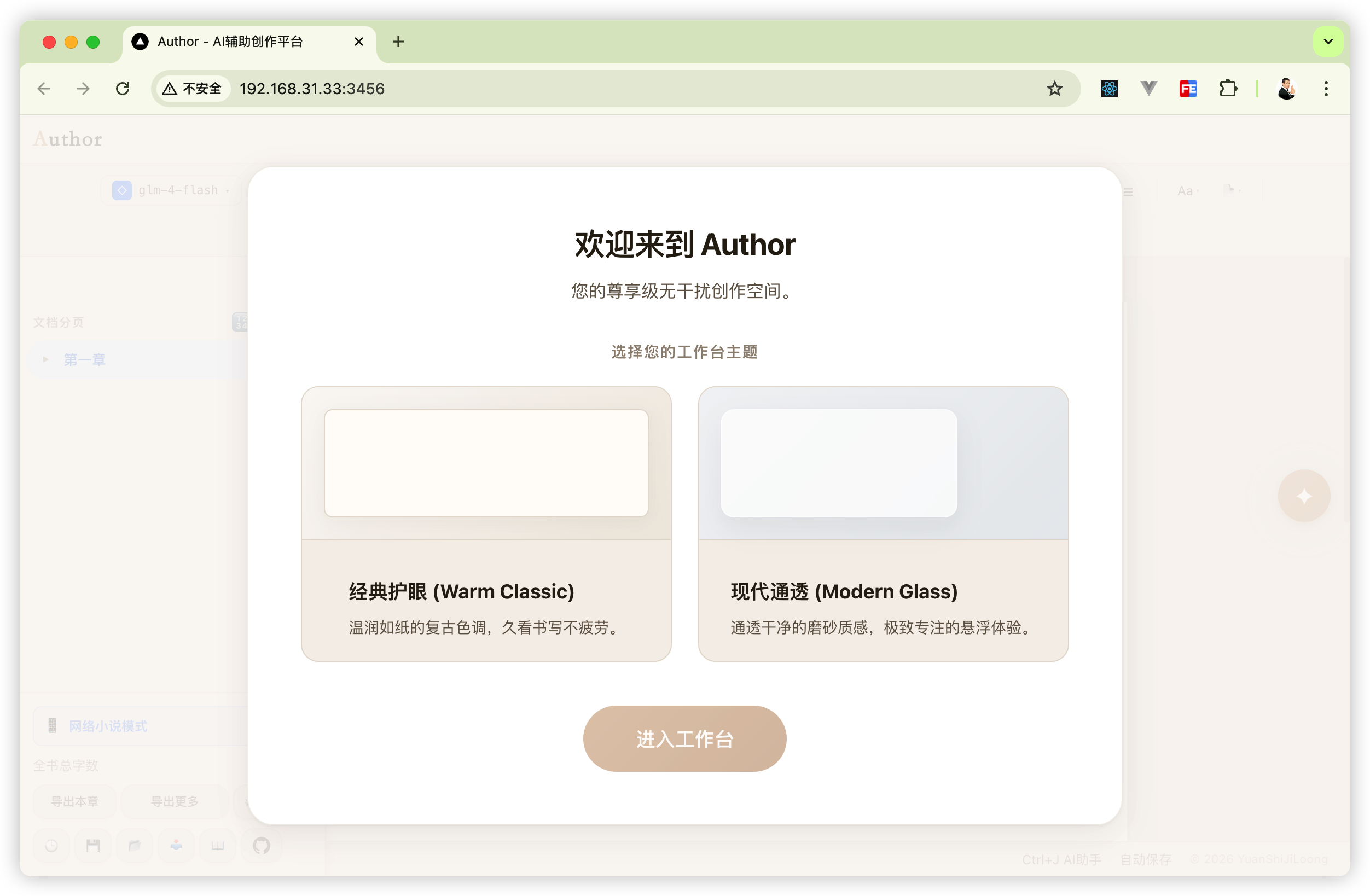 等待项目构建成功后,在浏览器访问 NAS_IP:3456 即可打开 Author。
