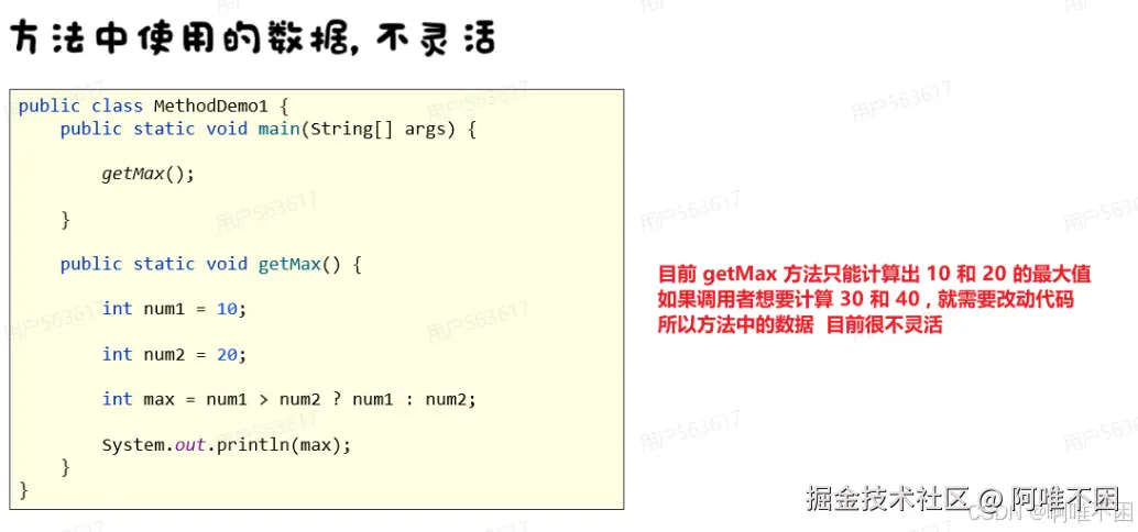 如果方法中的数据可以由调用者传入,那数据是不是就灵活了呢
