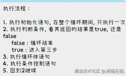 格式: for(条件判断语句;初始化语句;条件控制语句) { 循环体语句; }