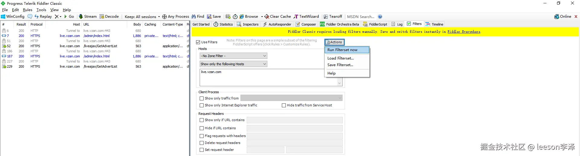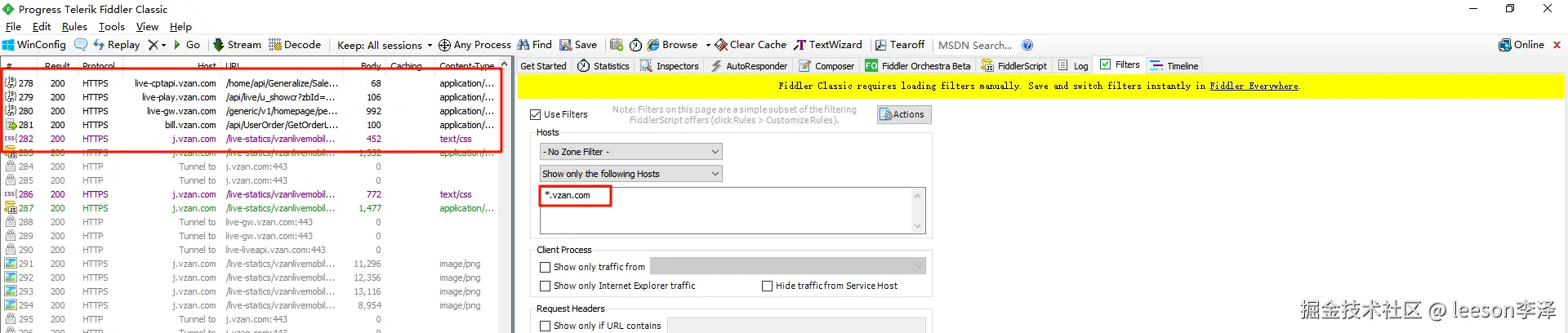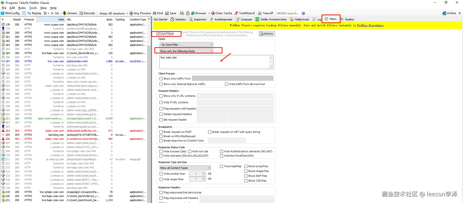 Use Filtters 启用规则,选中 Show Only the following Hosts,可以输入指定域名,