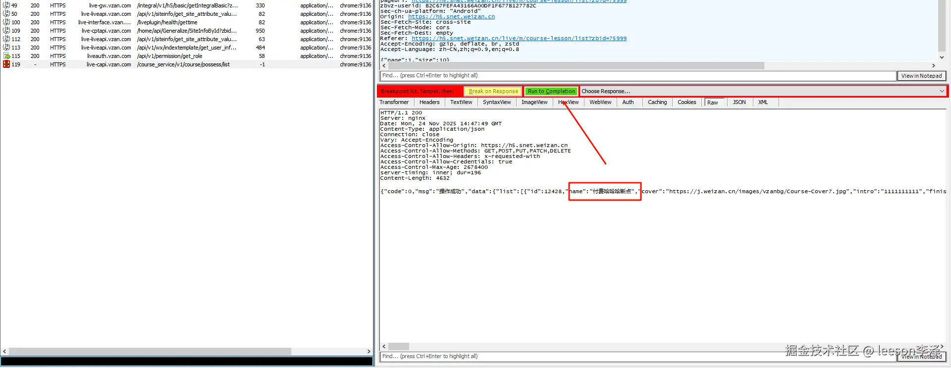 - 手机上访问小程序,可以观察到对应的请求: