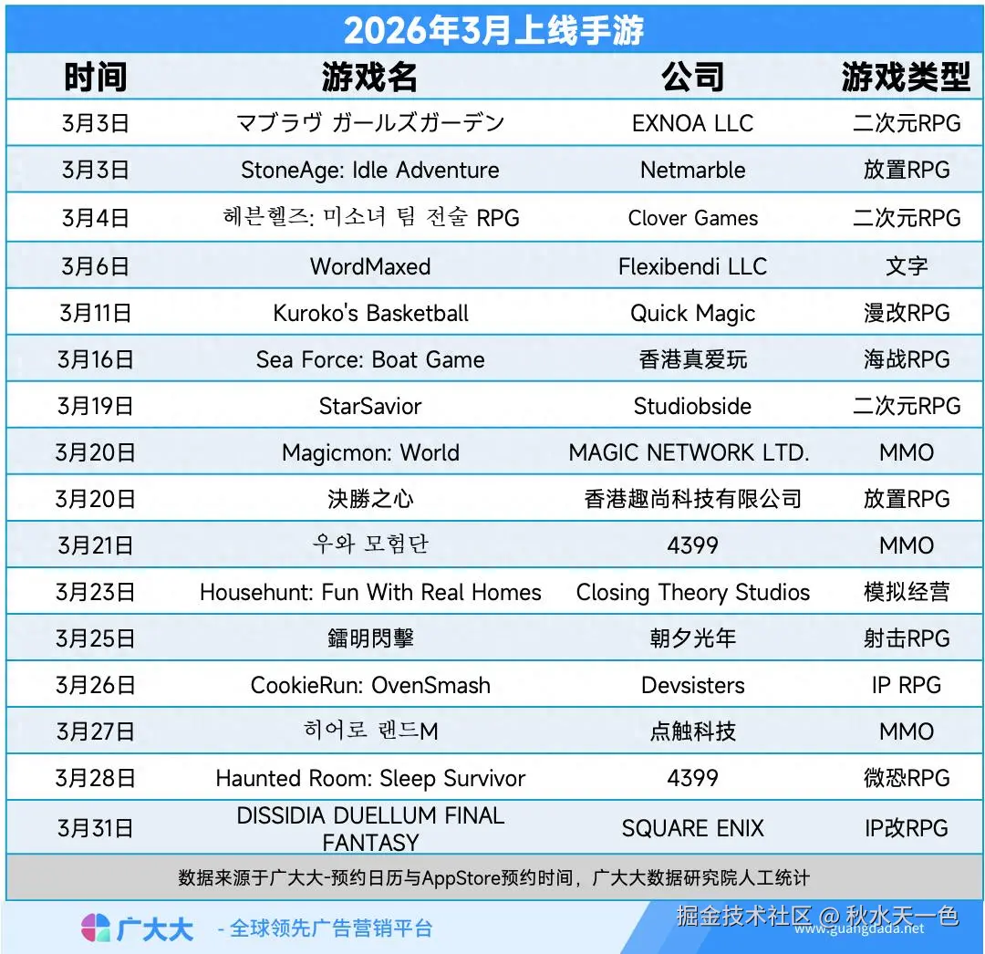 以上便是2026年3月新游简介,文中提到的产品仅为广大大-预约日历中的部分新游,更多内容可前往广大大官网进行查看,我们下期见~