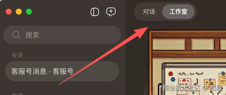 点击对话旁边的工作室按钮,打开就直接是小龙虾的工作室啦!