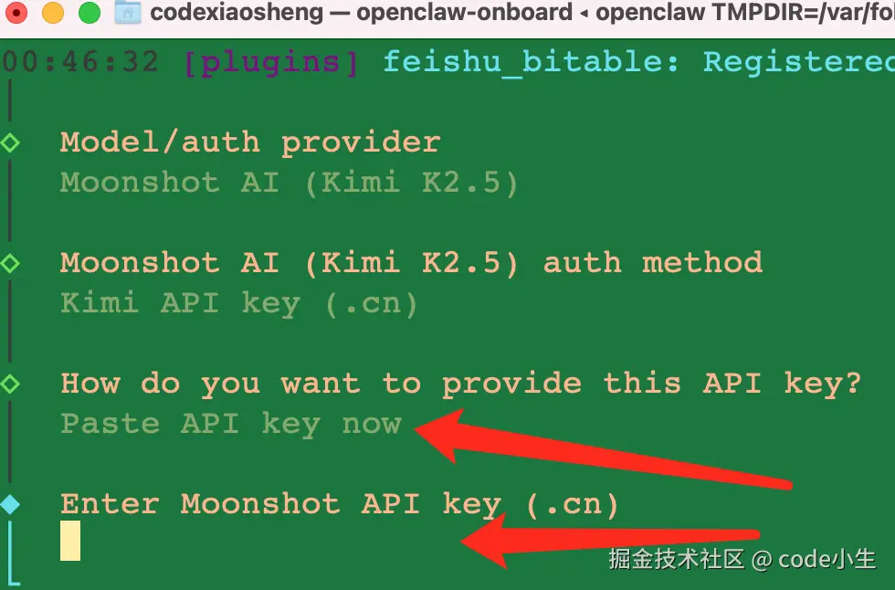 4.4 选择粘贴 API key 回车,立即粘贴
