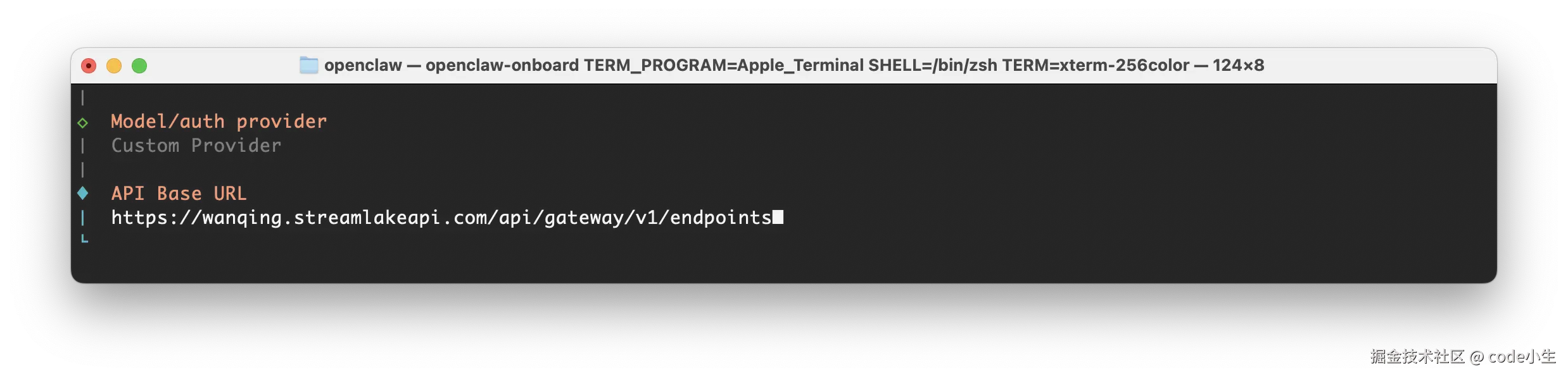 一般第三方平台也有接入 openClaw 的文档,常用的参数有 3 个: