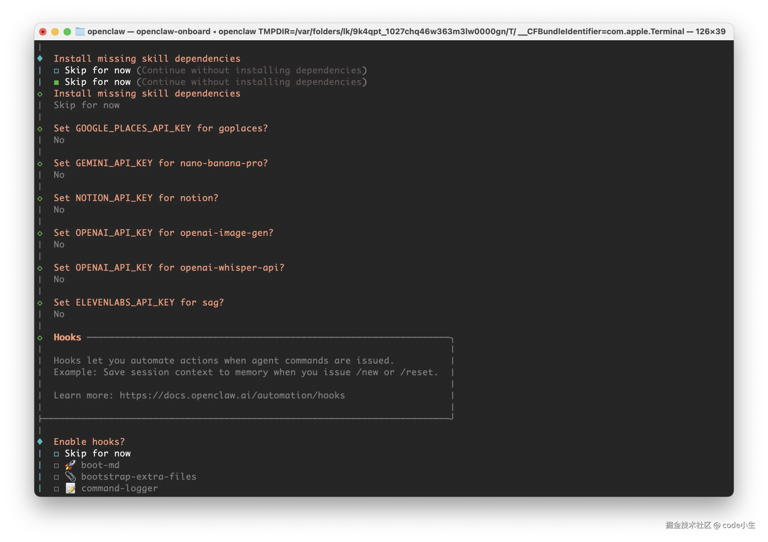 2.1 openClaw安装成功之后会自动进入初始化设置流程
