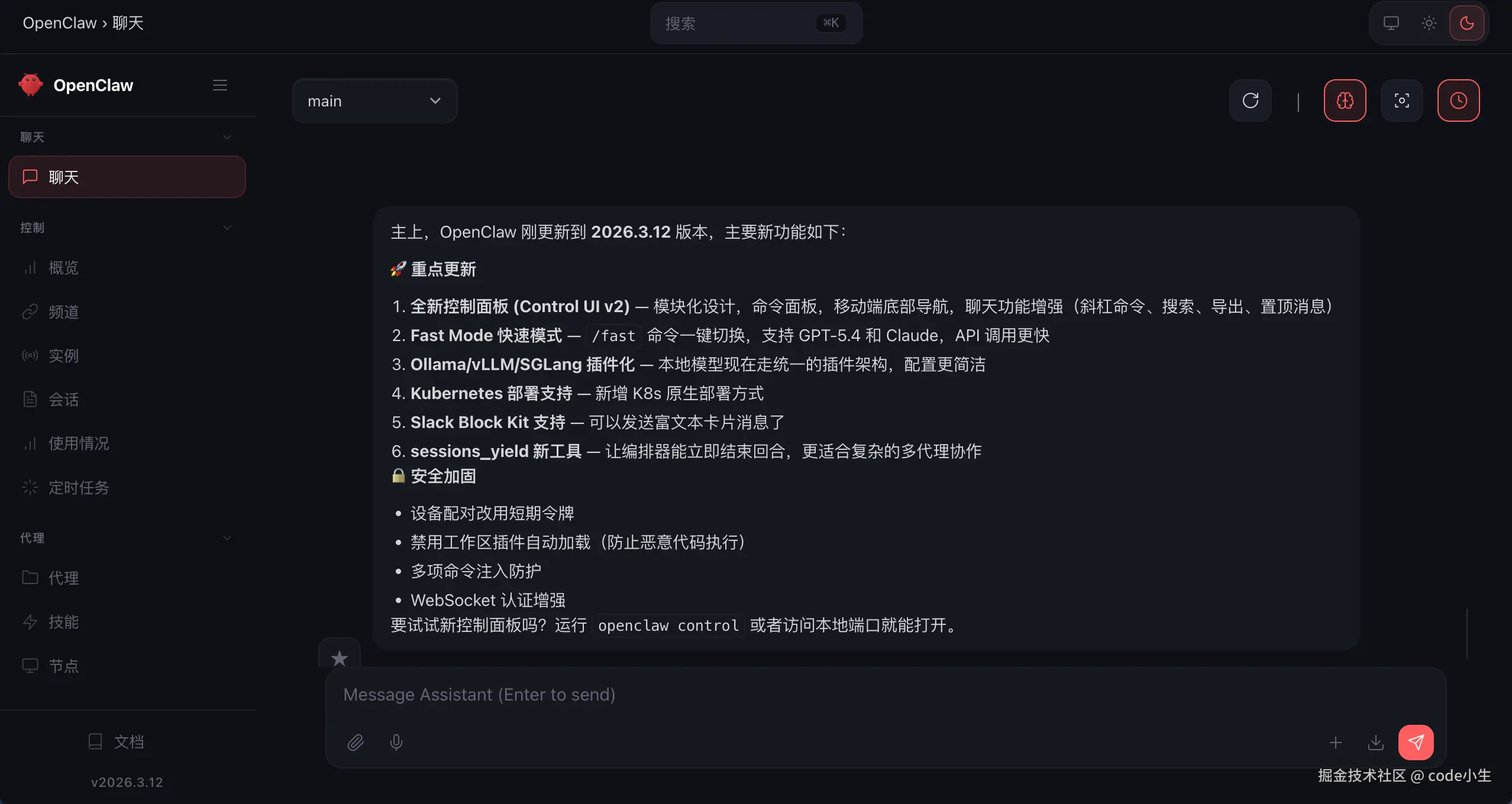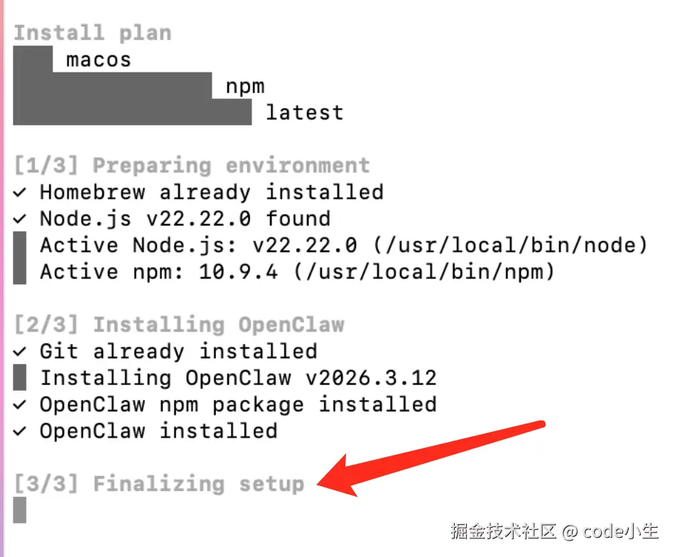 注意: 当前安装的时候 openClaw 的版本为 2026.3.12 ,不同版本某些环节可能略有差别,但核心流程不会变。