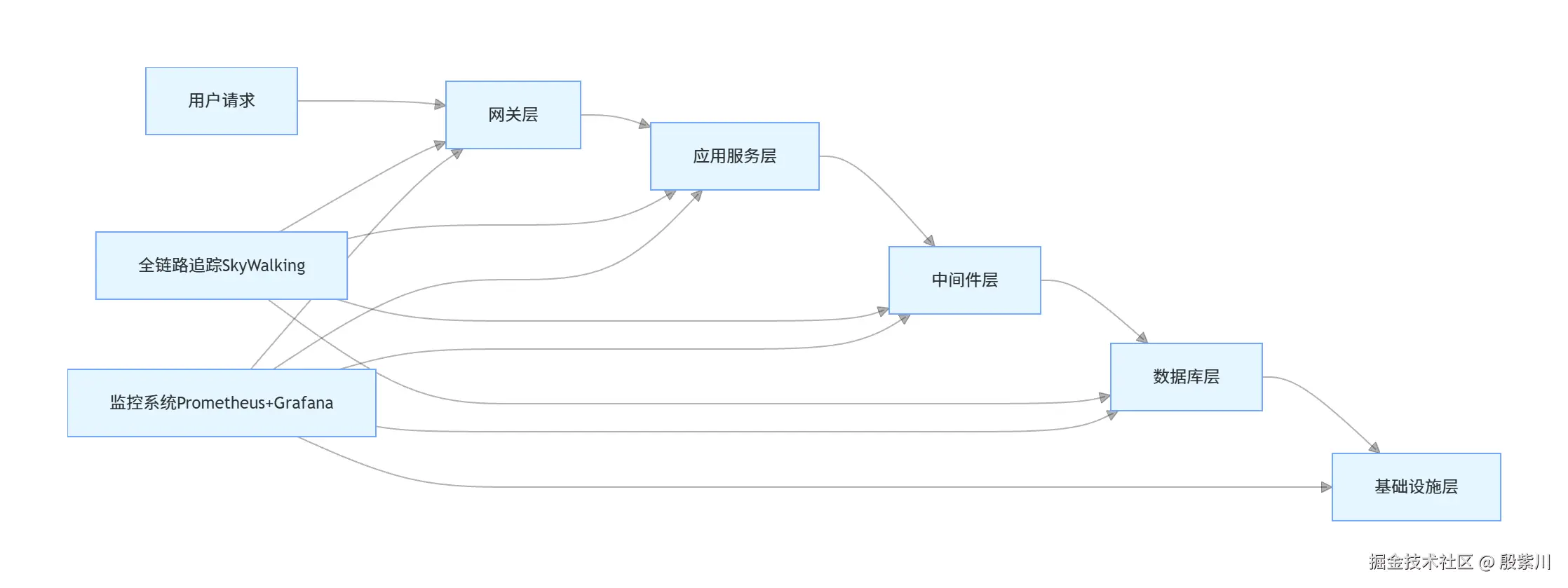 | 全链路追踪工具 | Apache SkyWalking 9.7.0 | 无侵入式探针、支持多语言、全链路拓扑可视化、精准定位慢调用,适配主流微服务架构 |