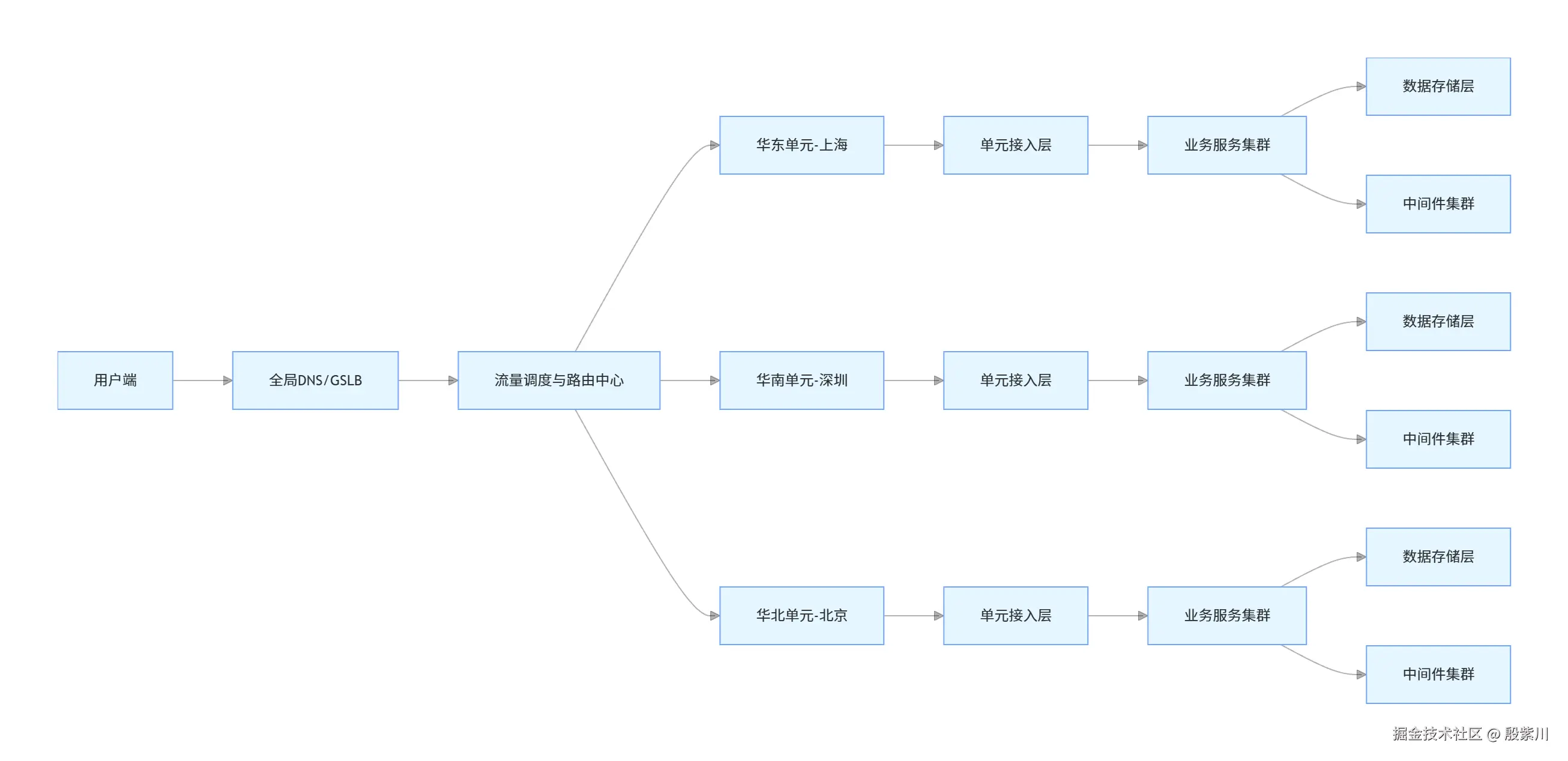 - 路由一致性原则:对于同一个路由键(如用户ID),无论何时、从何地接入,都必须被路由到同一个归属单元,这是保障数据一致性、避免跨单元调用的核心前提。