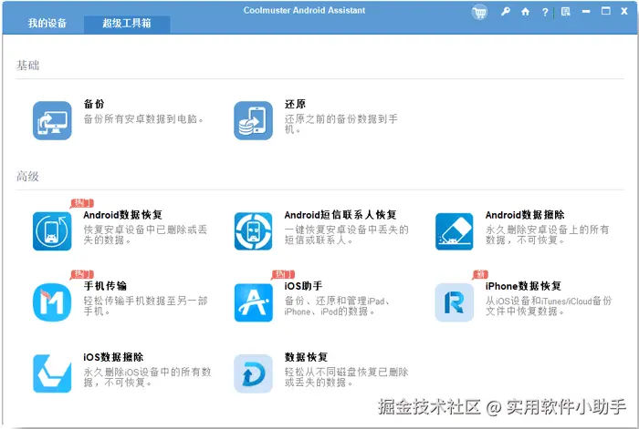 Coolmuster Android Assistant 是一款用于管理 Android 设备的一体化解决方案。它允许您有选择地备份和恢复特定数据,例如联系人、消息、应用程序和媒体文件。当然,该软件还可以让您在电脑和手机之间传输数据,让您可以直接在电脑上管理手机数据,例如删除联系人 、回复短信、卸载应用程序等。您还可以通过该软件一键备份和恢复您的 Android 手机。对于想要更好地控制备份和恢复内容的用户来说,这是理想的选择。
