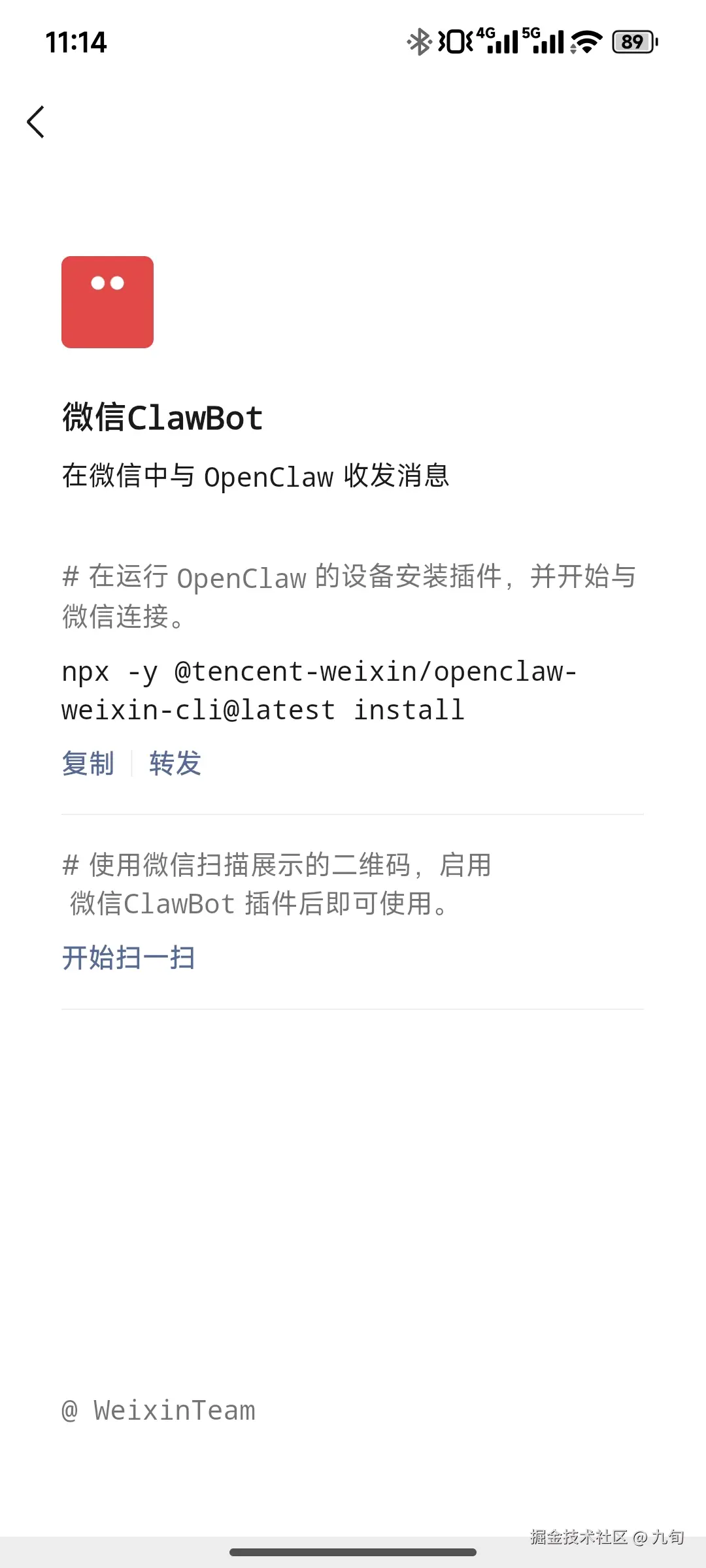 npx -y @tencent-weixin/openclaw-weixin-cli@latest install