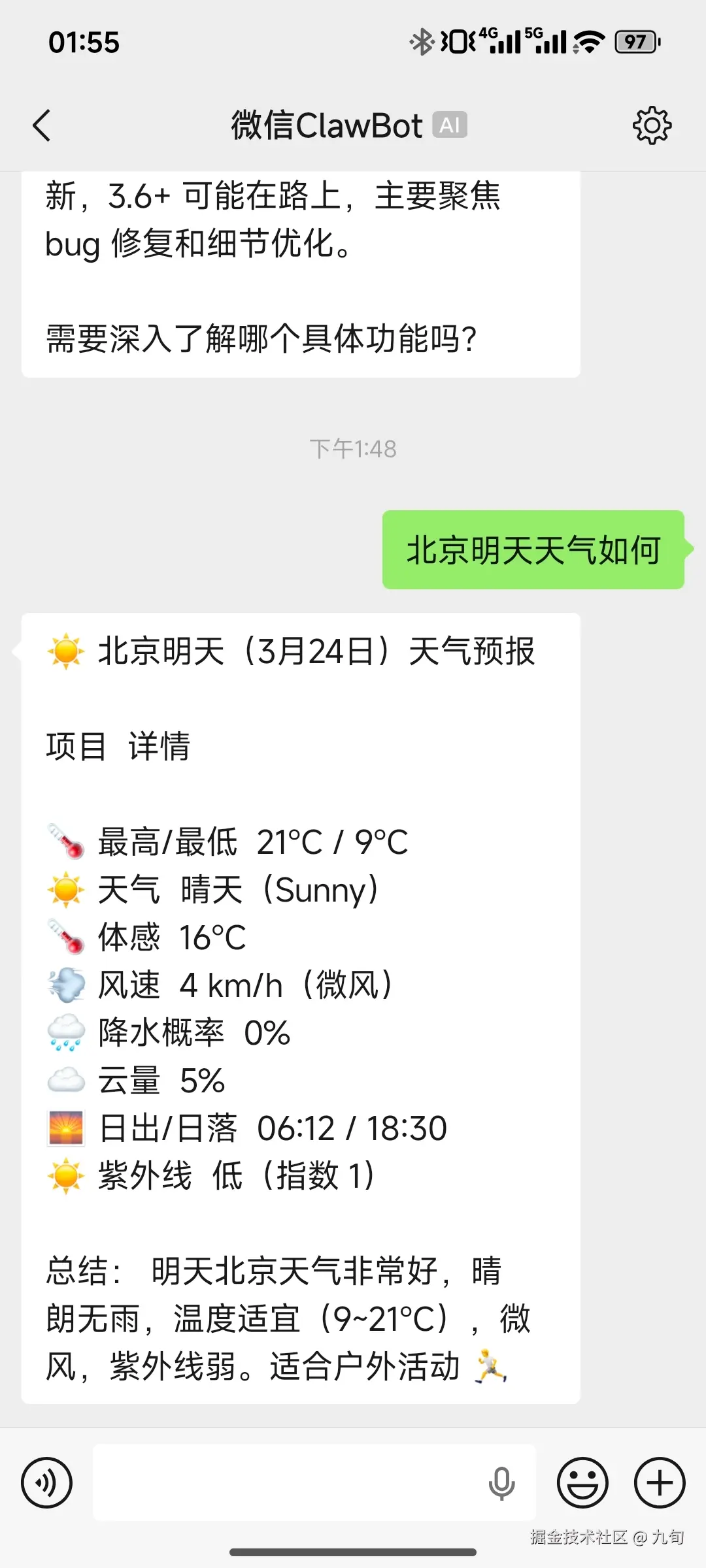 2025年3月23日收集微信App发布了【ClawBot】插件,可以直接用微信App连接OpenClaw了,我已经尝试了一下,很好用,总结下步骤给大家尝试: