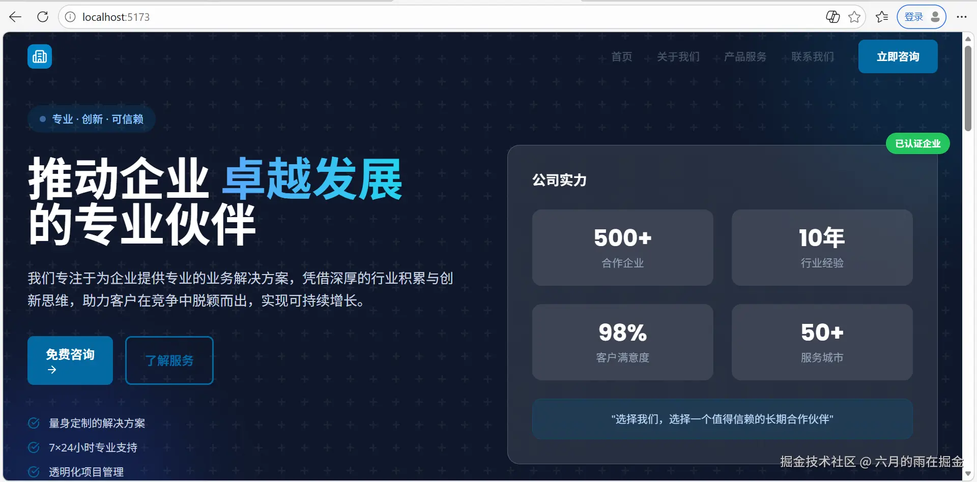 我们也可以复制生成的企业官网本地访问地址来看具体的效果,效果如图