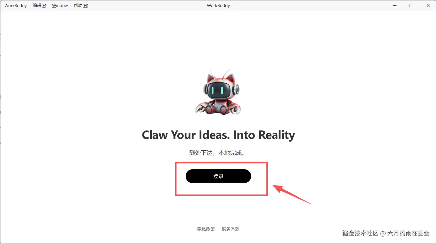 安装完成后,在打开的WorkBuddy 页面选择【登录】