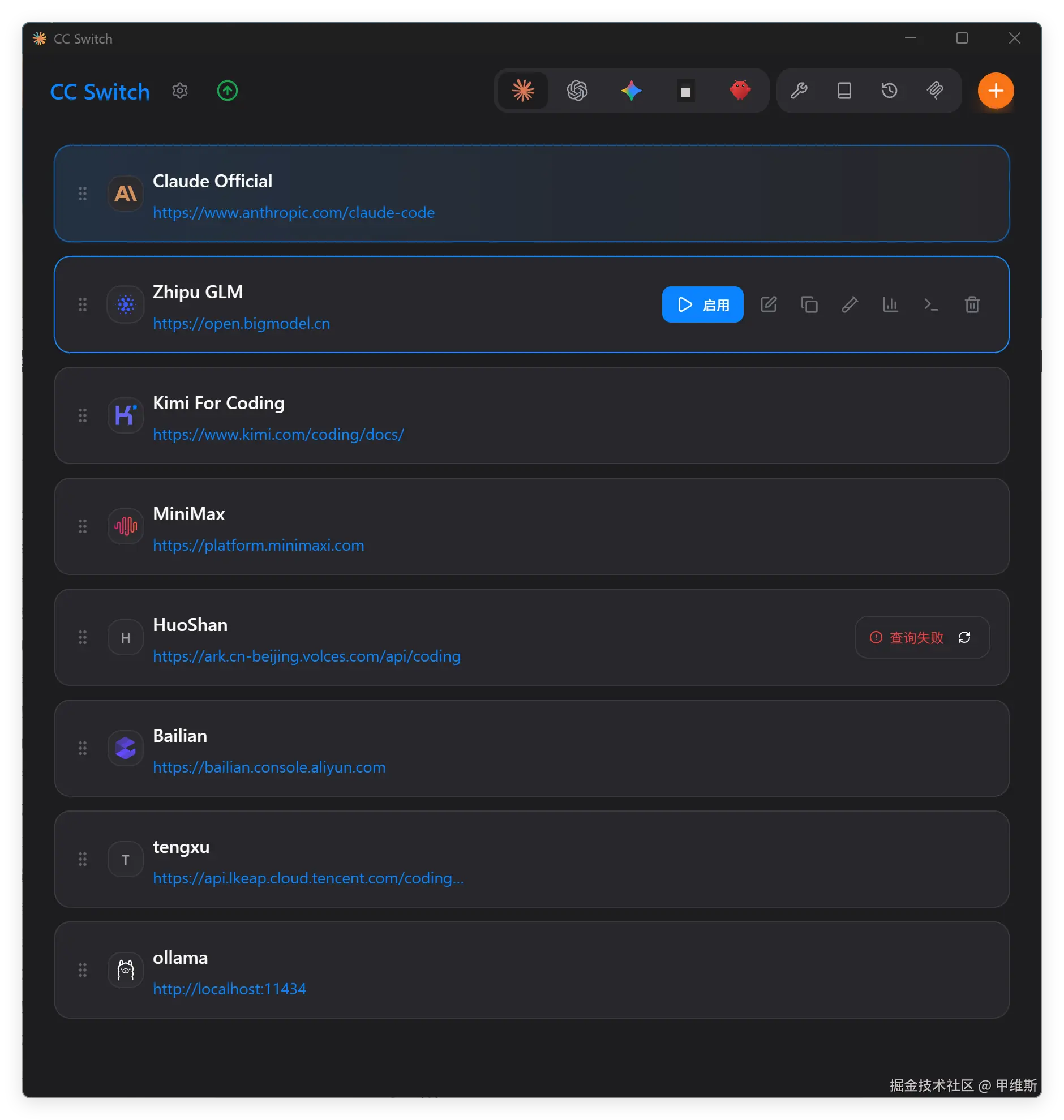 有了这个工具之后,使用起来就方便多了。只要提前配置好 API,点击启用,就可以切换了。