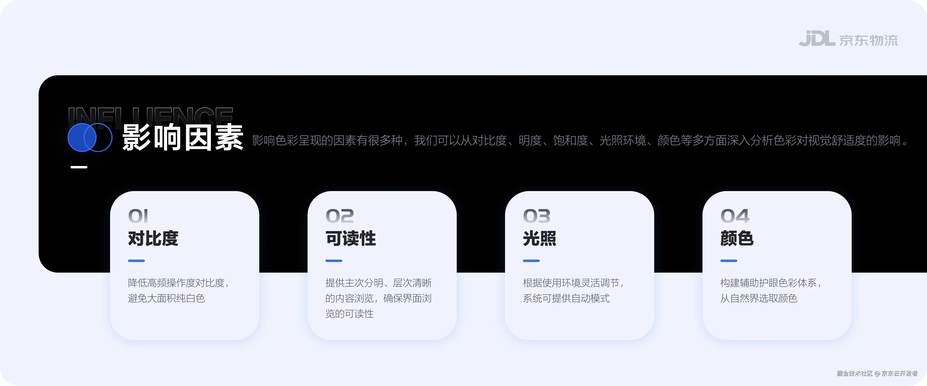 影响色彩呈现的因素有很多种,可以从对比度、明度、饱和度、光照环境、颜色等多方面深入分析色彩对视觉舒适度的影响。