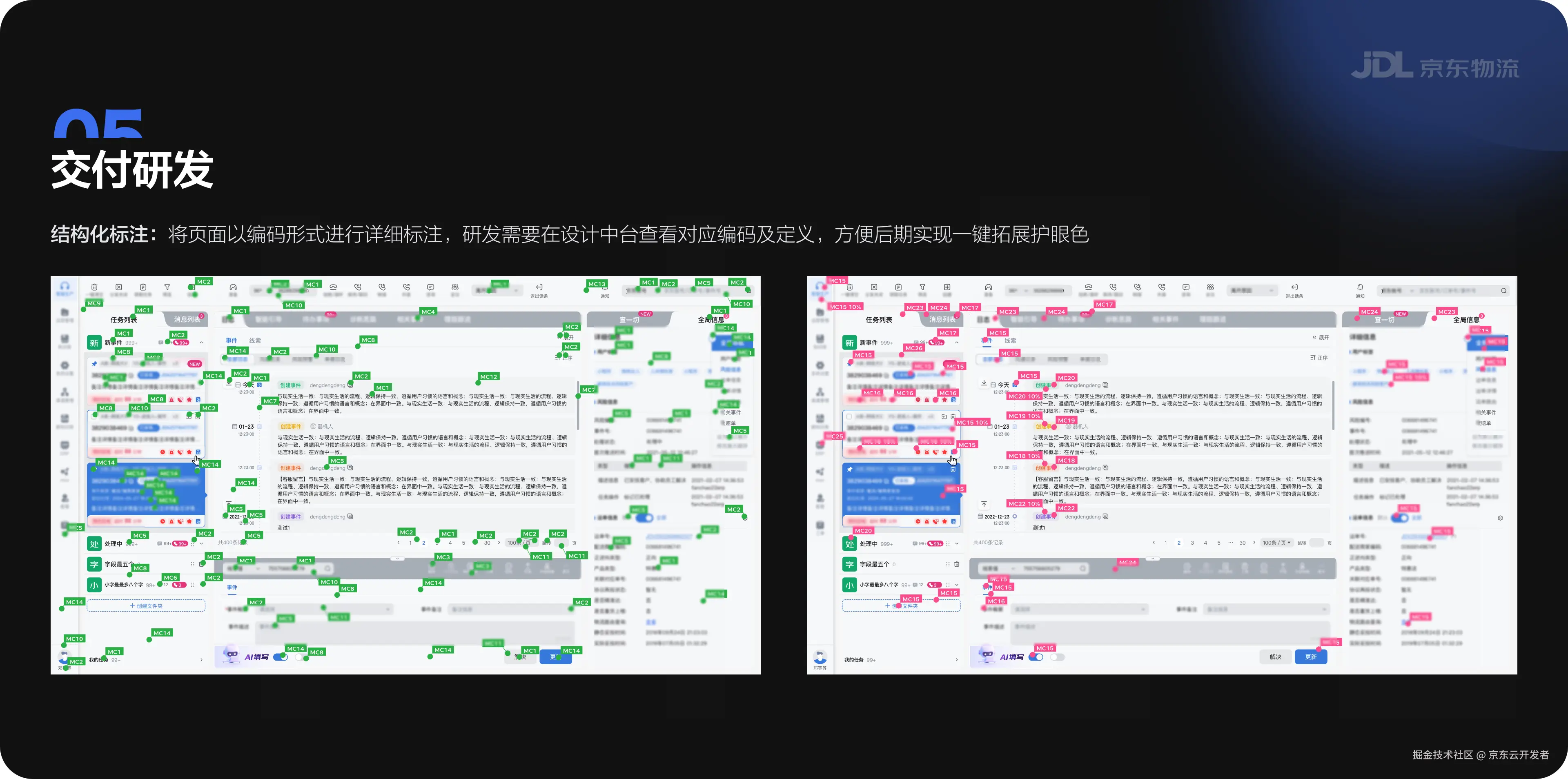 将颜色编码在页面上进行结构化标注,并交付开发,结合颜色编码表,实现一次开发上线三套护色