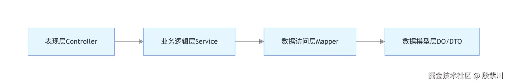 分层架构是最早被广泛应用的企业级架构模式,核心思想是将系统按技术职责进行水平拆分,每一层只与相邻的下层交互,形成单向的依赖链路,实现职责的隔离与复用。