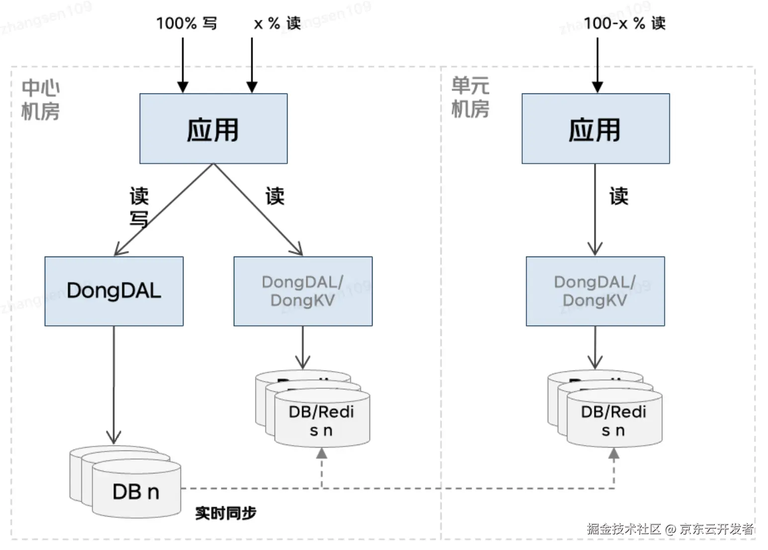 •读多写少的状态数据,代表业务商品、库存、用户等,业务场景以读为主,且能接受少量读延迟。读多写少的业务采用一写多读架构,用数据库承接写请求,用缓存承接部分读请求,底层数据库和缓存间做数据实时同步。缓存节点故障可执行缓存集群的主从切换,必要时也可以将请求回源到数据库。数据库故障可执行数据库主从切换。