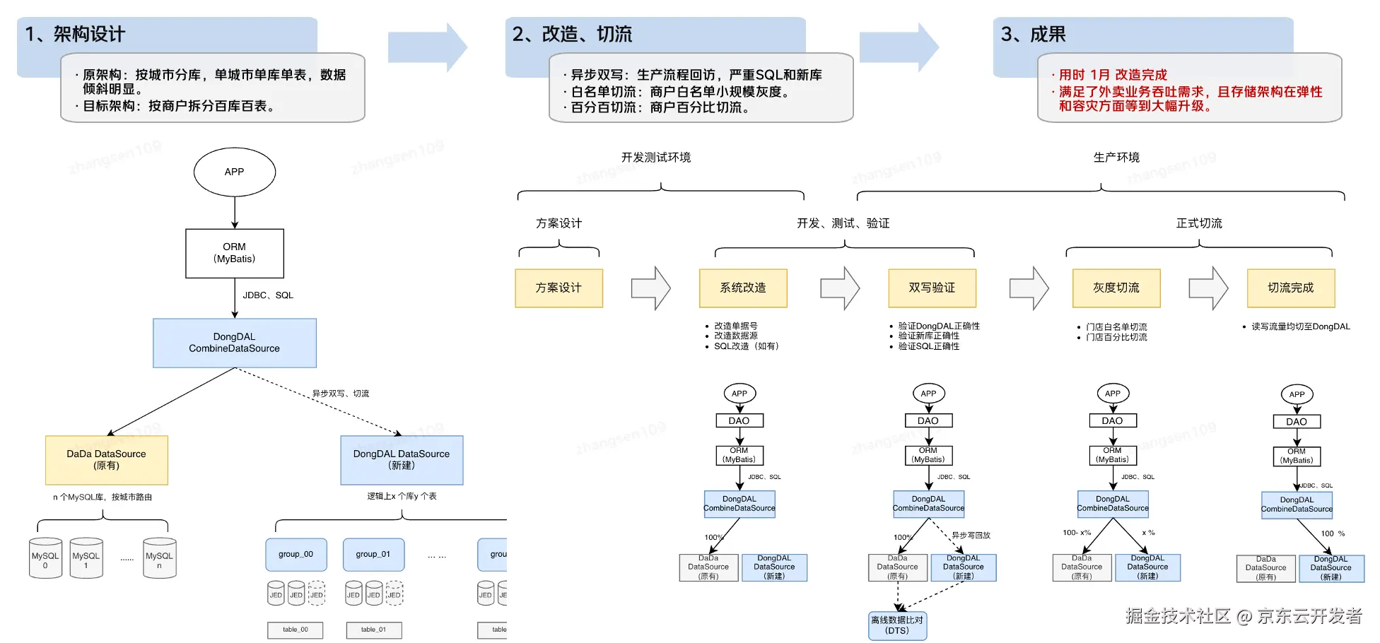 1、统一流水单据号生成规则:每一笔单据数据均有一个唯一ID,即单据号。如下图“第一步”所示,改造流水数据单据号的生成规则,在流水数据的单据号中,拼接入数据库路由信息,该路由信息明确该笔单据所存储的目标库。