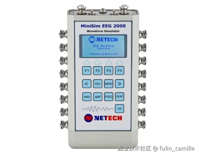 产品亮点 6 种脑电图波形仿真 16 通道独立输出 三导联正常窦性心电图波形仿真 性能测试波形:正弦波、方波、三角波 适用于所有脑电图仪器的性能检测 独家专属产品两年质保。 Netech MiniSim EEG 2000脑电图波形仿真仪器