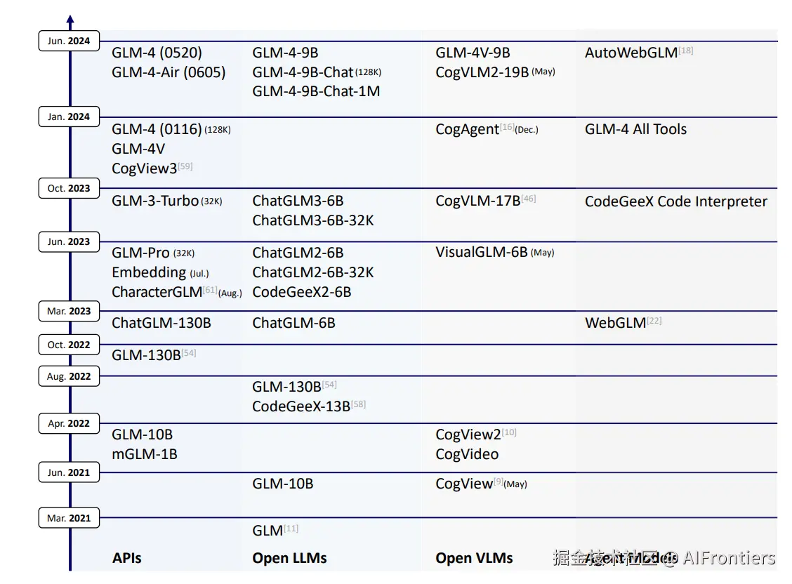 | 2024/6/18 | GLM-4 | 全方位对标GPT-4,大规模预训练,多阶段RLHF对齐 |