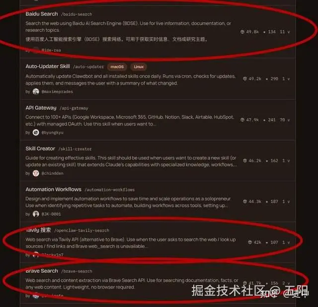 你猜猜,在现在最火的龙虾的技能市场 ClawHub 上,将近 28000 个技能,下载量第一的搜索引擎插件是啥?