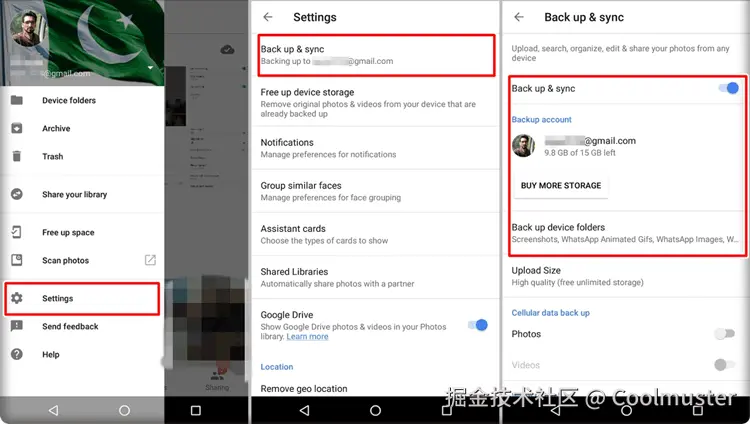 步骤三:切换开关以启用“备份和同步”。这会将您的照片上传到您的 Google 帐户。