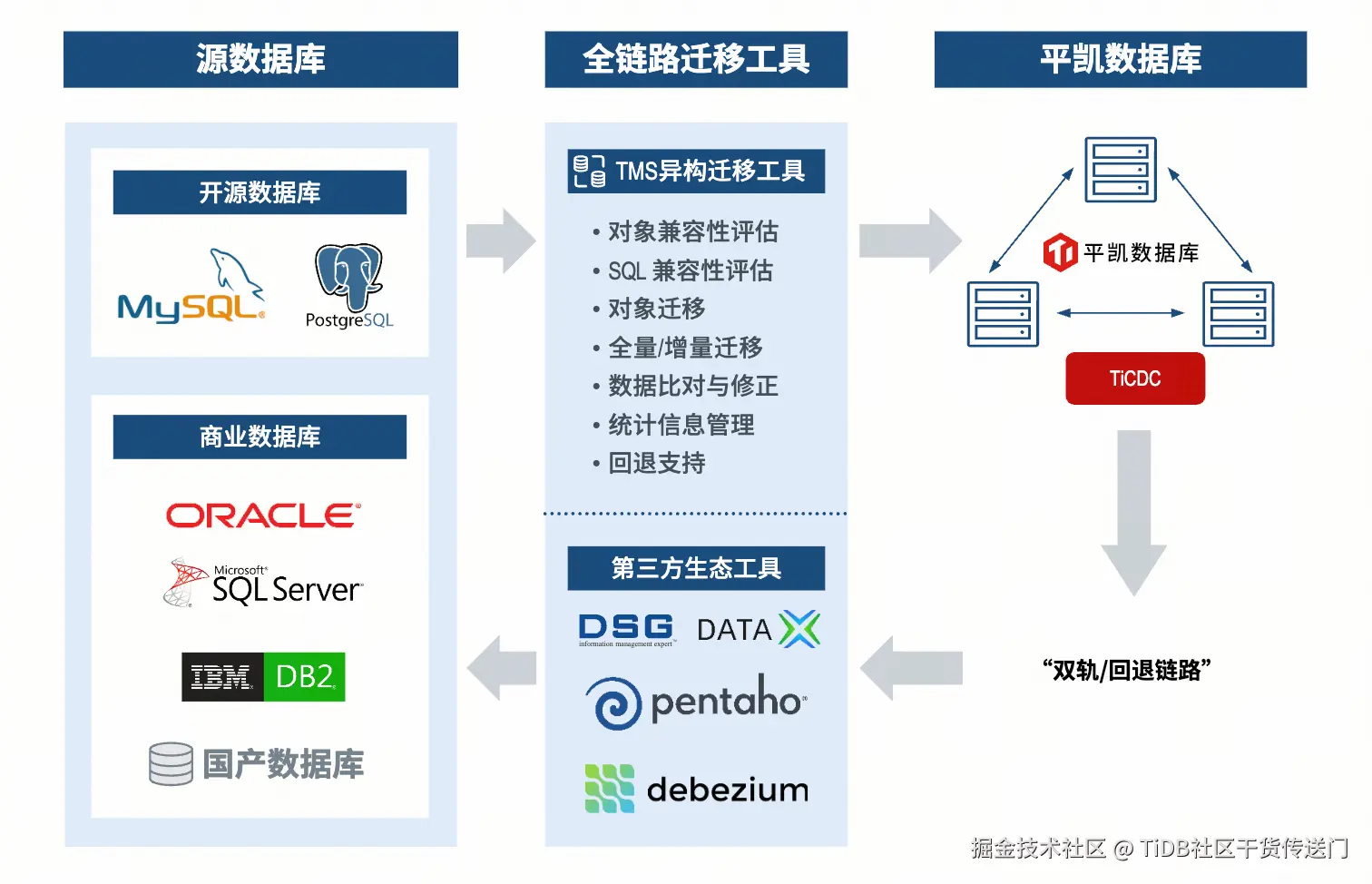 **统一访问入口:**下游 TiCDC 通过 TiGateway 访问上游平凯数据库集群