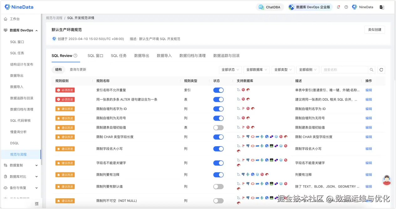 但企业级数据库权限管理不是简单的 RBAC 问题,而是和数据源、审批、时效、审计、人员变动权限回收、数据库工作台协同深度相关的系统工程。在这个问题上,NineData 和 Bytebase 各有侧重点,也有相应边界。