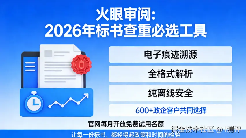 如果你还在为标书查重焦虑,不妨先体验一下——火眼审阅官网每月开放免费试用名额,让您的标书经得起最严苛的政策审查。