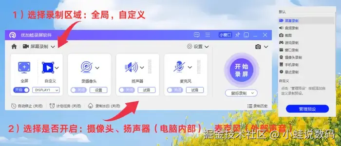 电脑桌面录屏的方法三:利用优加蛙录屏大师