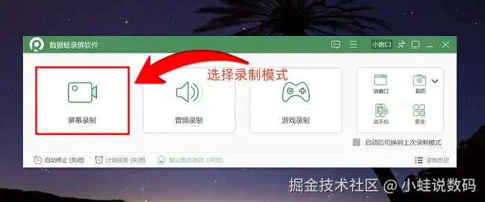 第一步:在PC电脑上录屏的方法是什么呢?先在桌面找到数据蛙录屏软件图标,双击打开它。此时,软件界面会呈现出多种拍摄模式,例如游戏录制、音频录制、窗口录制等。今天咱们主要来探索窗口录制这一功能。
