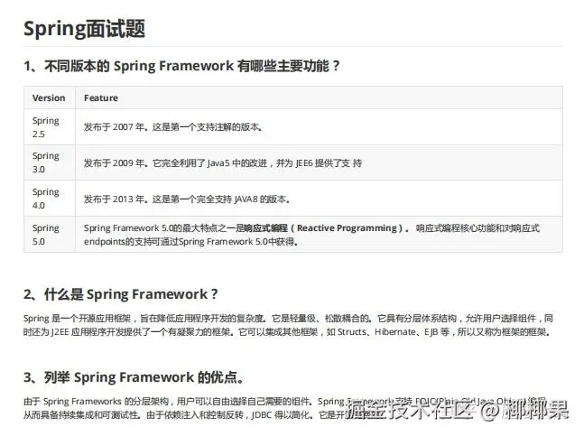 - 不同版本的 Spring Framework 有哪些主要功能?