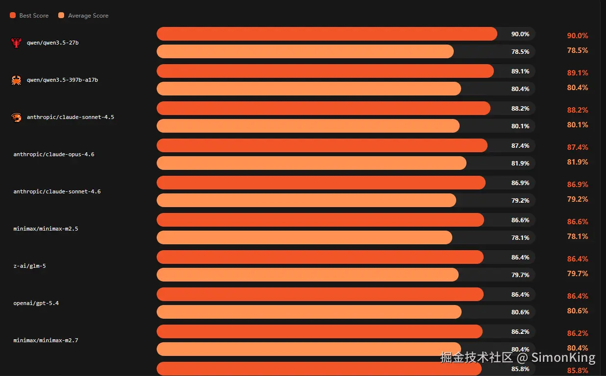 模型的排名可以从Pinchbench上可见一斑,排名仅供参考。