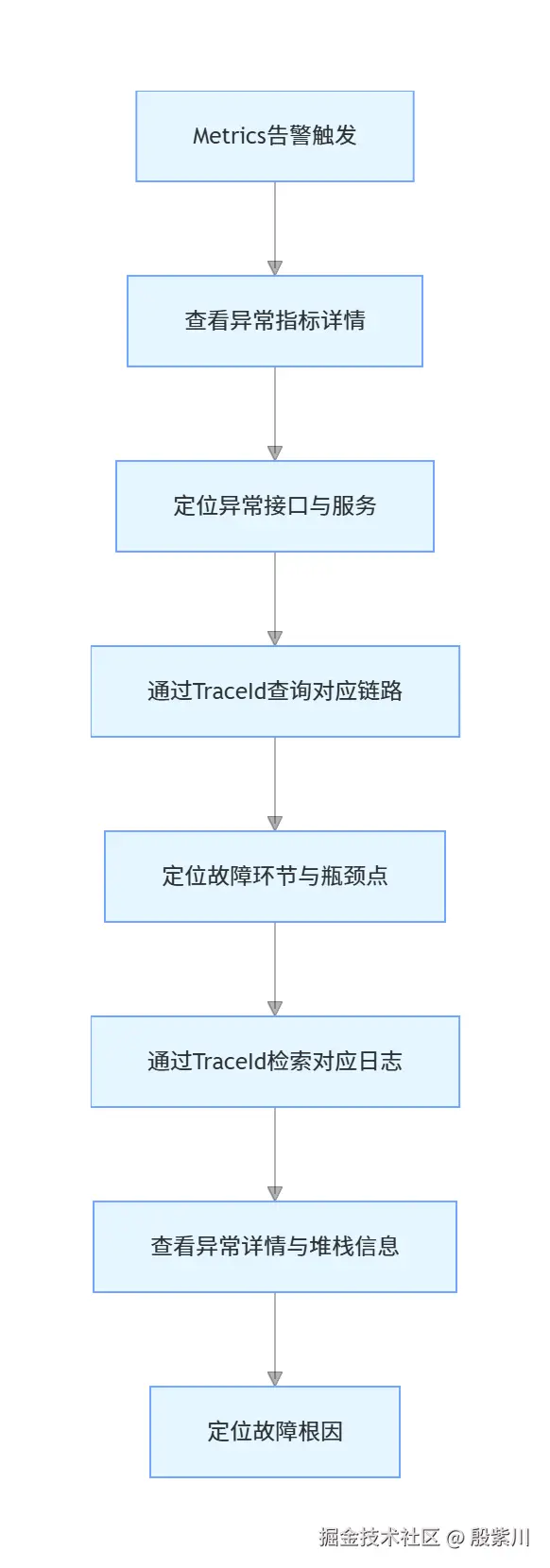 完整的故障排查流程,是三大支柱协同的核心价值,流程如下: