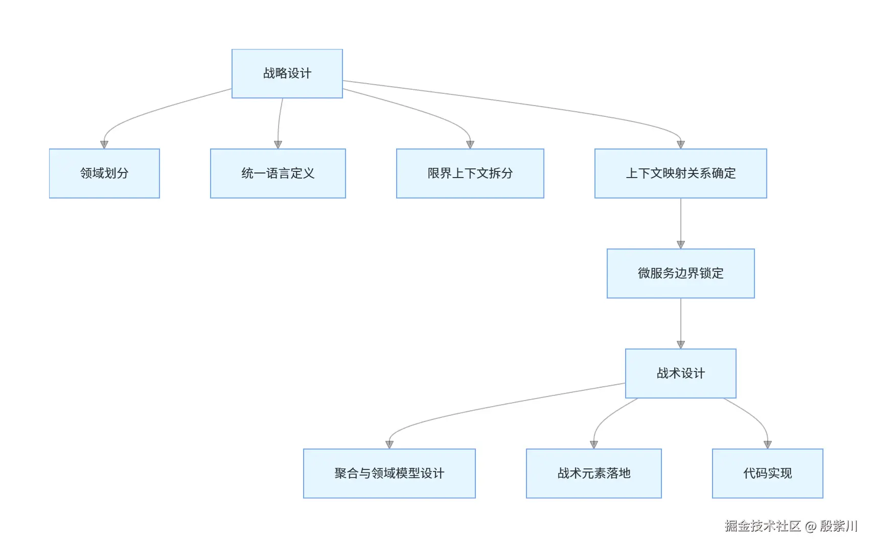 DDD的设计分为两个核心阶段,这也是微服务拆分的完整流程: