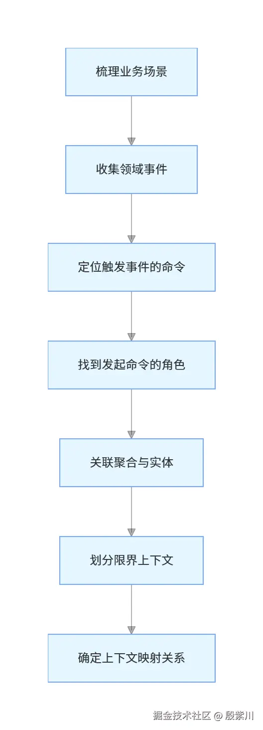 拆分限界上下文最实用、最落地的方法,就是事件风暴(Event Storming) 。它是一种团队协作的建模方法,通过可视化的方式,让业务和开发一起梳理业务流程,拆分限界上下文。